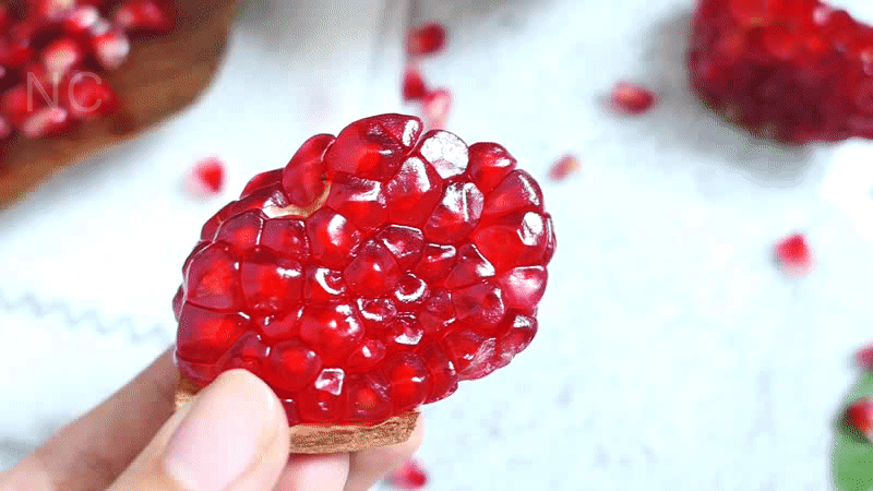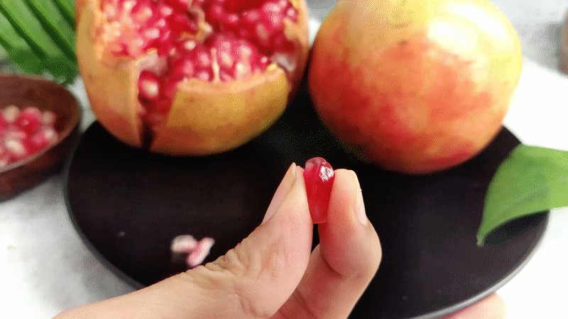 石榴如花绽放,取粒不笨重,果肉不破碎。
